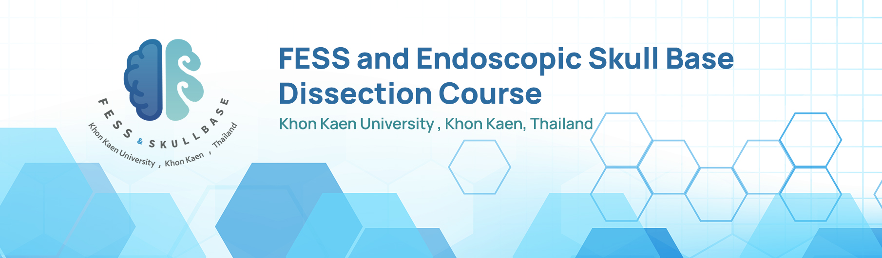 This hands-on workshop for endoscopic sinus surgery at Khon Kaen University has been held since 2000 by the division of Rhino-allergy of Department of Otorhinolaryngology in co-operation with Department of Anatomy and Department of Radiology, Faculty of Medicine, Khon Kaen University. Recently, the workshop extends beyond sinus to skull base surgery. It is an opportunity for the participants to gain their knowledge in endoscopic sinus and skull base surgery as well as skills with realistic experiences from practicing on the fresh cadavers with CT scan of paranasal sinuses as a roadmap is available for every station under-supervision of all experience instructors.